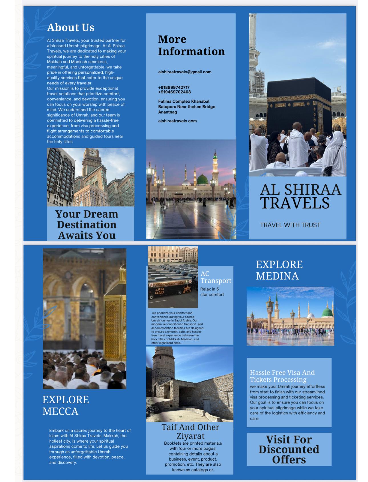 This package ensures that pilgrims can focus on their Ibadah while Al Shiraa Travels takes care of all logistics with care, sincerity, and professionalism. Customization options and group bookings are also available on request.